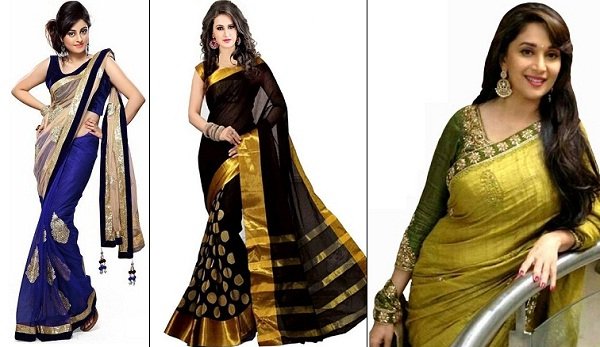 These sarees with a rich gold fringe are a magnificent pick for formal occasions like a pooja function or any morning occasion amid a wedding. The brilliant outskirt influences these sarees to look all the more rich. Include a pearl accessory or a couple of dangling hoops to add dramatization to the look.
