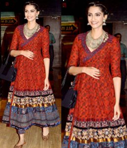 Bollywood’s big deal fashionista who does lecture form as well as practices it religiously, Sonam Kapoor’s outfits are fiercely trailed by the mold business. Spotted with a planner long kurti in Anagraka style, this kurti grasps custom with a cutting edge curve. The way she has styled it with intense extras is simply far too great.