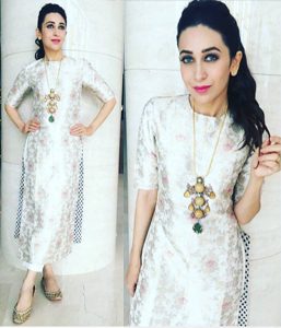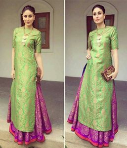 You can never turn out badly by matching up a long kurti with a skirt and this is clear from Kareena Kapoor’s symbol. The popular brocade style long kurti is cooperated with a complexity shading lehenga style skirt and Kareena Kapoor resembles a million dollars with her entire group. The kurti emphasizes her ladylike excellence and makes her look extremely effortless.