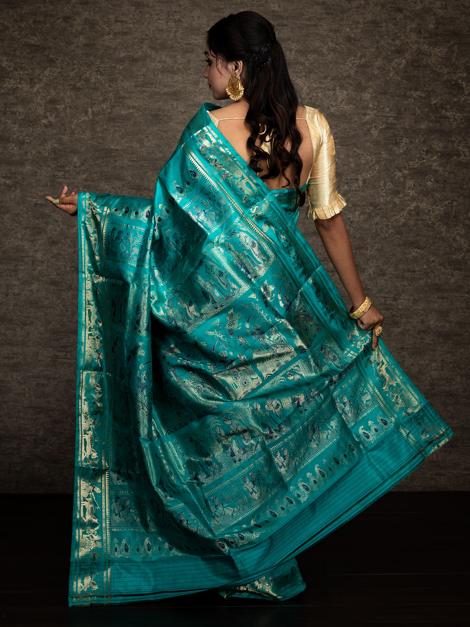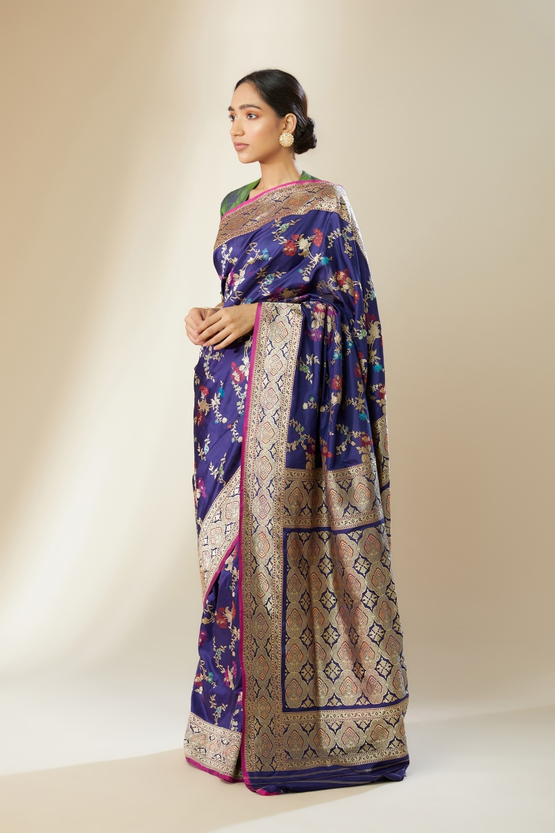 Get a Meenakari saree whenever you’re unsure about what to wear because it looks great on every occasion. This saree is a colourful, vivacious variety of banarasi saree. All eyes will be on you as soon as you walk into the room. That is a good meenakari saree’s magic!